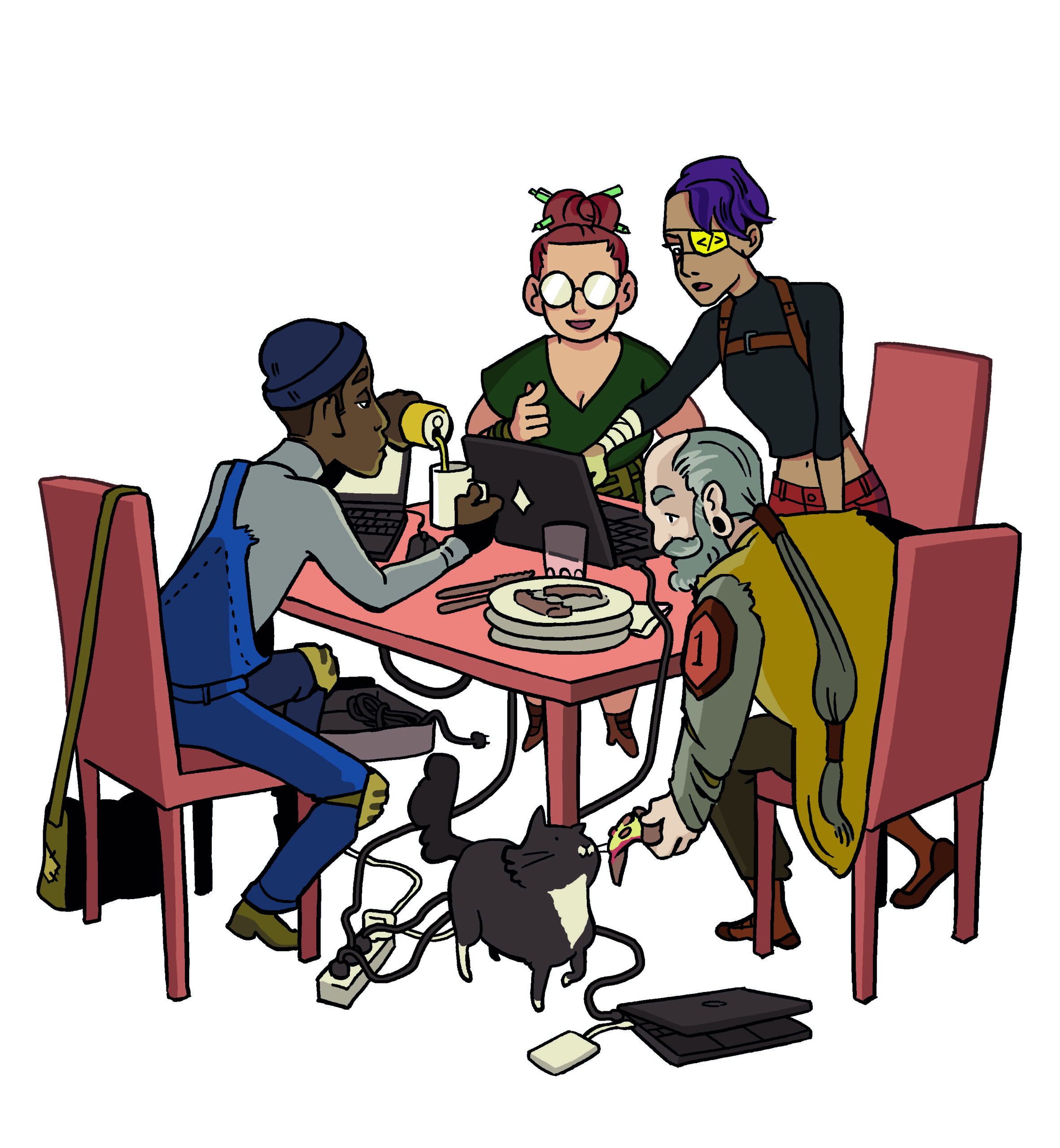 With the help of these four characters representing a hackathon team, I created scenarios, comics, infographics and illustrations accompanying the text.